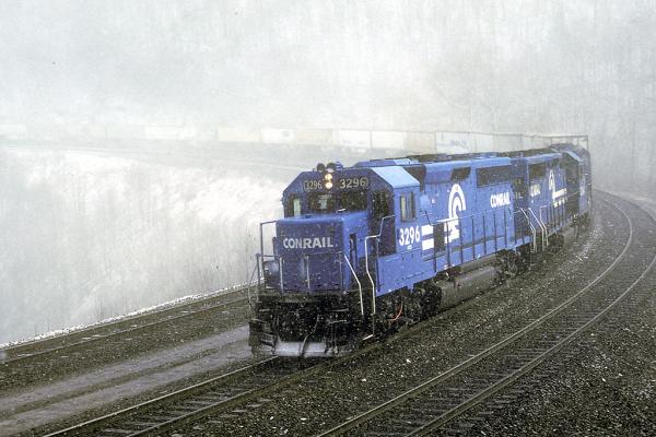 CR 3296 Leads TV4 Down Horseshoe Curve, 3/88