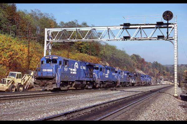 CR 1969 leads a light engine move at Bennington PA on the Pittsburgh Line, 10/82