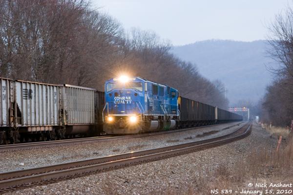 NS 6727 (ex-CR 5593) leads NS 539 at Cove