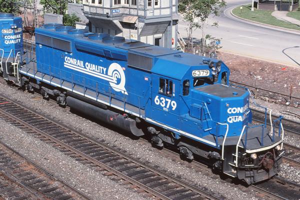 CR 6379 SD40-2 assists Eastbound Conrail UFY-684 at Cresson Pa.