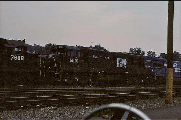 CR 6459 and 6501 lead a westbound Conrail manifest through Warrior Ridge, PA on Oct. 14, 1989
