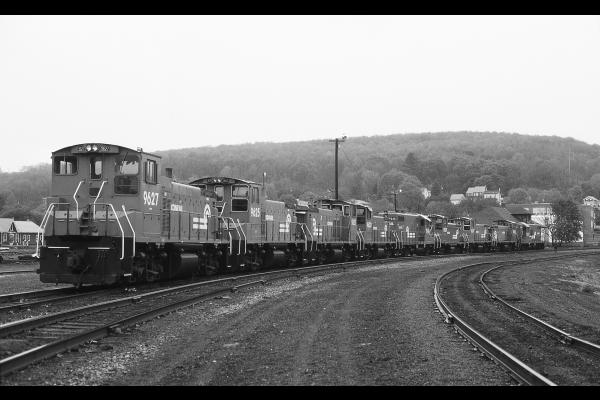CR 9627 leads the Saturday light engine movement ready to depart West Cressona PA, 5/2/1987