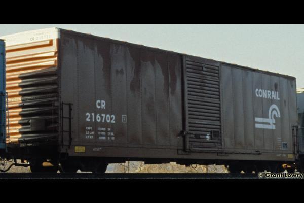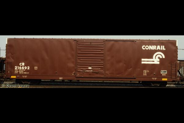 Conrail inherited 60' boxcars from the PC, EL and Reading, and purchased several new classes during the early years. These were mainly dedicated to auto parts service. Conrail also rebuilt hundreds of older boxcars into high-cube B62 class cars at Hollidaysburg.