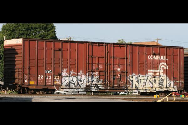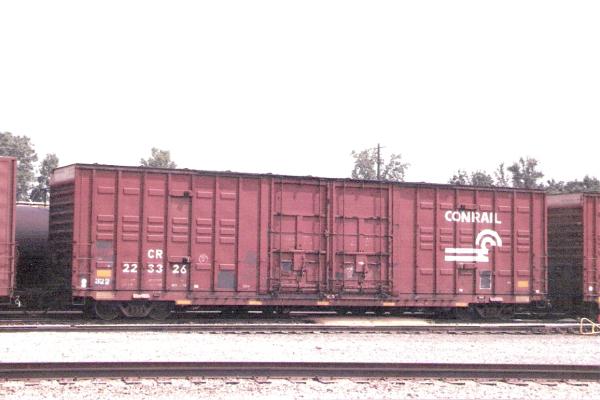 Conrail's B63B class was composed of 162 also built by Berwick in 1978. Because of differences with interior bulkheads and load-restraining apparatus, these cars differ in appearance from the older B63A classes primarily in the location of the "waffles" on the sides of the cars. Conrail 223301-223432 was equipped with bulkheads and rub rails for hauling engine blocks, while Conrail 223433-462 lacked these devices and were used in general pool service.