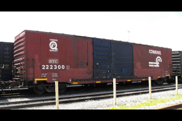 The X82s were built by Pullman-Standard in 1974 for the PC, a class of 277 cars. They were delivered with Pullman-style doors, and most retrofitted doors were of the Youngstown type. CR 220225-220265, 281400-281635 ex PC same #.