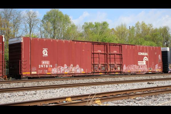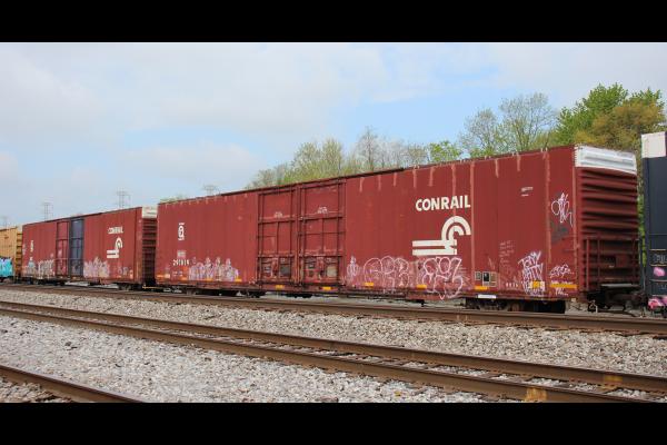 The B83A class of hicubes were built new for Conrail as CR 297601-297912 by Greenville Steel under order number 1156, starting in April of 1978. Almost 70 cars would be renumbered into the CR 243101-243596 series and another 7 cars were renumbered into the CR 297350-297356 series. The B83As were originally assigned to serve Ford Motor Co. in auto parts service, according to Conrail mechanical drawings.