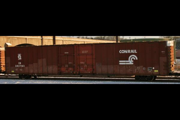 The X60S class was built in 1965 by Greenville Steel as NYC 67126-67280 Lot 962B. 72 cars carried their NYC numbers to Conrail and numbered into the CR 293090-293203 series. 80 cars were renumbered by PC as 293126-293280 then becoming CR 293126-293280. The cars that carried their NYC number directly to Conrail were renumbered around the cars that got PC'ed and then CR'ed. Also some cars were renumbered into the CR 242700 series.