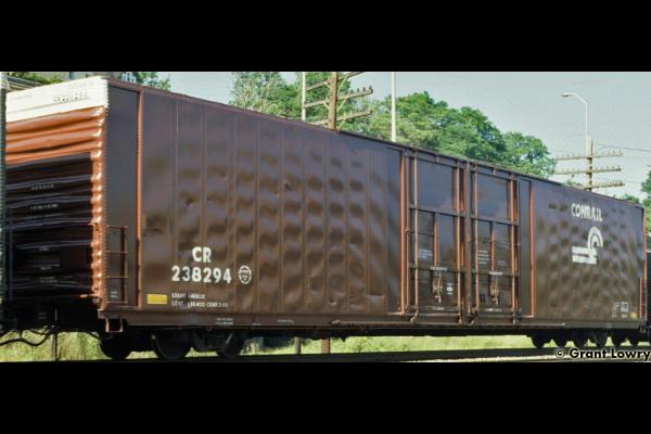 Conrail owned the largest fleet of hi-cube auto parts cars of any railroad. They inherited 86' high-cube boxcars from the PC and EL, and also acquired cars secondhand from the ATSF, CSX, DRGW, DTI, DTS, GTW, and WCRC. Conrail also purchased several groups of newly-built 86-footers.