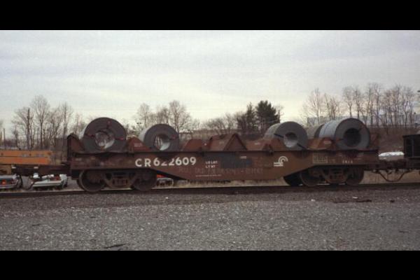 Conrail rostered a wide variety of coil cars. Their fleet was originally composed of cars of EL, RDG, NYC, PRR, and PC origins, and was augmented by several groups Conrail purchased over the years. Conrail even designed their own Coil cars, the distinctive CoilSHIELD series.