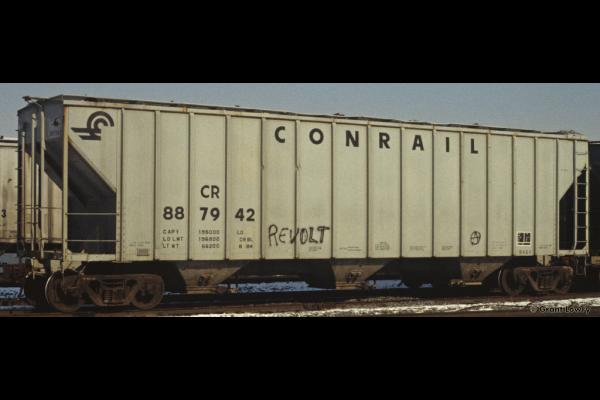 The 946H class was built by General American Car in 1965 as NYC 886176-886225. 25 cars carried their NYC number to Conrail and became CR 887934-887958. 24 cars were renumbered into PC series 886176-886225, then becoming CR 886176-886225. Cars have a capacity of 4700 cuft.