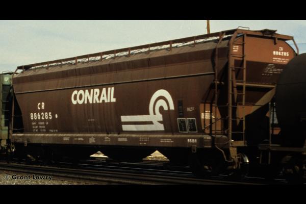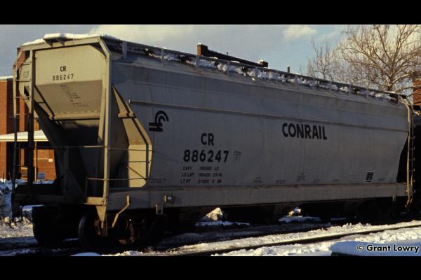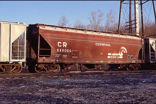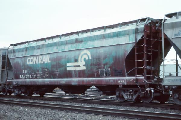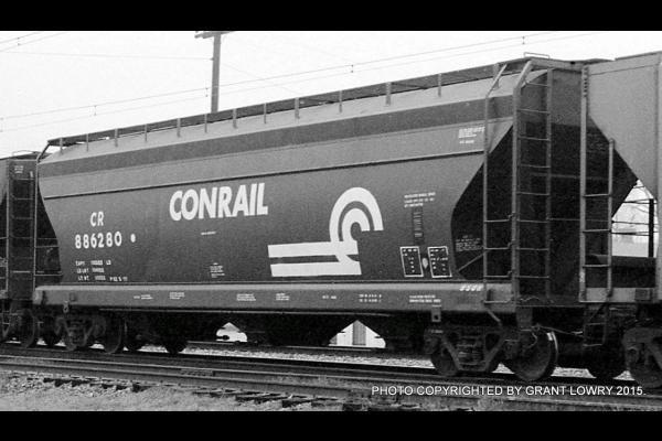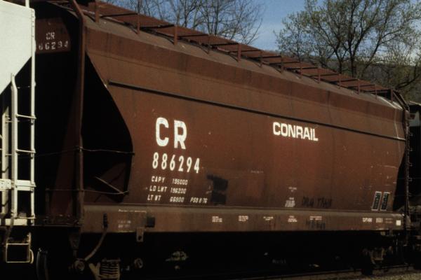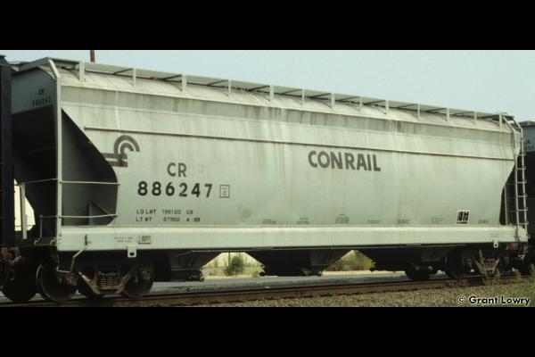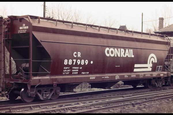 The 958H class was built by ACF in 1965 as NYC 886226-886325. 43 cars carried their NYC number to Conrail and became CR 887959-887999 & 888006-888007. 55 cars were renumbered into PC series 886227-886325, then becoming CR 886227-886325. Cars have a capacity of 4650 cuft.