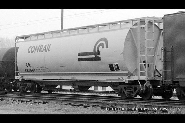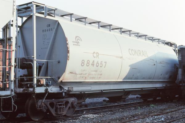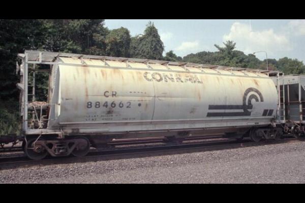 The H42A class was built by ACF in 1964 as PRR 260091-260120. 21 cars carried their PRR number to Conrail and became 884642-884664. 10 cars were renumbered into PC series 884991-885015, then becoming CR 884991-885015. Cars have a capacity of 3500 cuft.