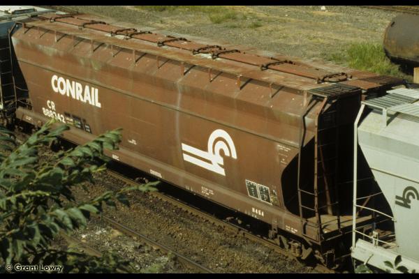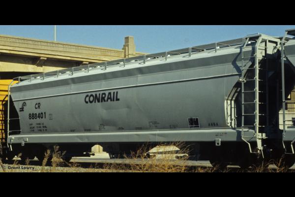 The H45A class was built by ACF in 1966 as PRR 260706-260775. 46 cars carried their PRR number to Conrail becoming CR 890972-891017. 23 cars were renumbered into PC series 888341-888408, then becoming CR 888341-888408. Cars have a capacity of 4600 cuft.