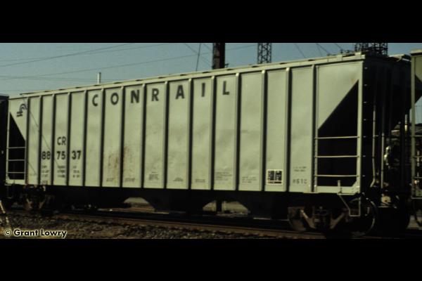 The H51C class of covered hoppers were built by PC at their Holidaysburg Car Shops in 1969 as PC 887390-887789. Cars then became CR 887390-887789. Many cars were sold the leasing companies such as AEX and NRLX and can be seen across the country. Cars are rated at 100 tons, 4635 cuft, & are 55ft 6in long.