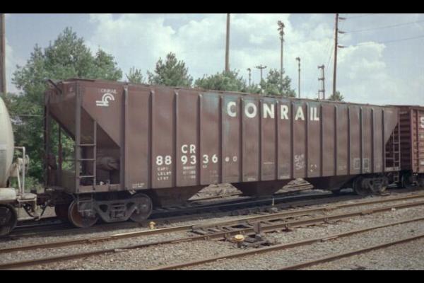 The H54 class of coveed hoppers were built by Pullman Standard in 1971 as PCB 888749-889999. 1234 cars made it to Conrail and became CR 888749-889999. Cars are rated at 100 tons, 4785 cuft and are 59ft 2in long. Conrail's H54 class was a group of 1250 PS-2CD cars built and leased to the PC, originally given PCB reporting marks to distinguish them from cars governed by the PC's bankruptcy process.