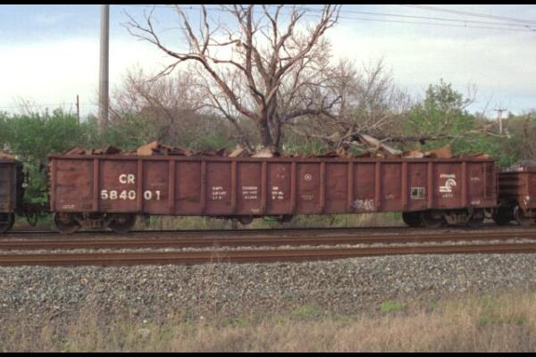 CR 584000-584098 ex Rock Island 400000-400299 series. Cars built by Thrall in 1971. Cars aquired by CR in 1980.