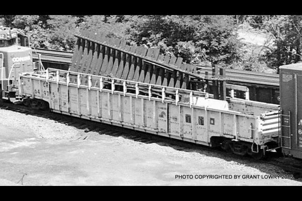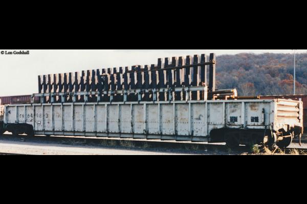 The PRR began rebuilding some class G26C gondolas with a fishbelly and interior center divider to carry panel-track switches as early as 1966. These rebuilds continued under the PC and CR years, with some cars being rebuilt into the early 1980s. Conrail labeled some of these cars "PANELIZED TURN OUT CARRIER"s on the left-hand side.