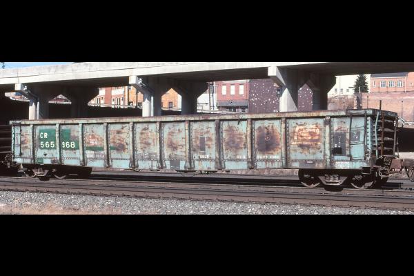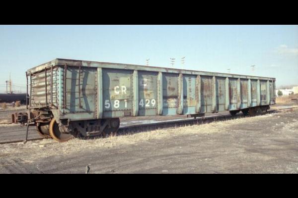 Originally built as PC 623260-623549 by Altoona in 1969. Cars were renumbered into several series. CR 565950-566009 & 581400-581467 are general service gons. CR 604600-604684, 604686, 604688-604689, 604691-604817have 7' bulkheads for loading of pipe. CR 611000-611025 have covers for loading of steel coils.