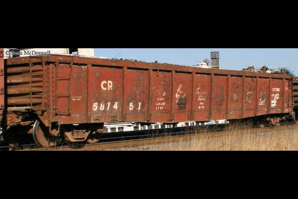 Originally built as PC 623260-623549 by Altoona in 1969. Cars were renumbered into several series. CR 565950-566009 & 581400-581467 are general service gons. CR 604600-604684, 604686, 604688-604689, 604691-604817have 7' bulkheads for loading of pipe. CR 611000-611025 have covers for loading of steel coils.