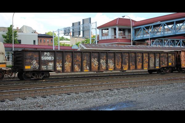 Conrail's class G46 65' gondolas were built by Fruehauf for the PC in 1972.
