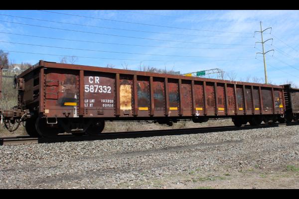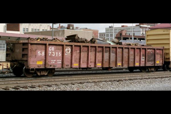Class G52Q (CR series 587300-587519) was rebodied by the Hollidaysburg, PA car shops in 1992 from Class 120G gondolas (NYC 720000-720449 series).