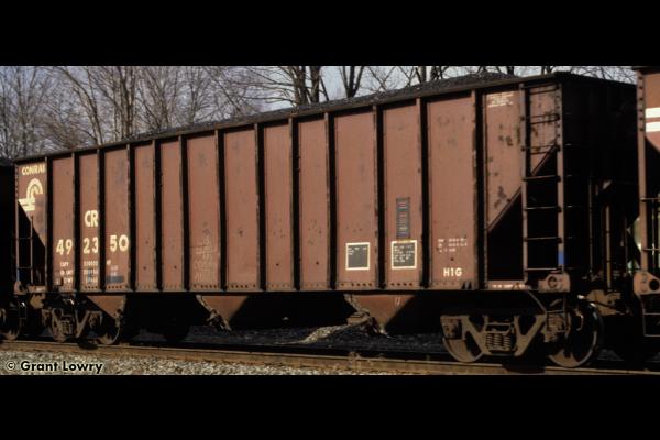 Conrail's H1G class was built by the Chessie at their Raceland, KY shops. 130 H1Gs were equipped with the ill-fated Hopper Toppers and given the AAR designation HTR so they could alternate between coal and grain service as-needed. While the program was not a success, it is a testament to Conrail's resourcefulness.
