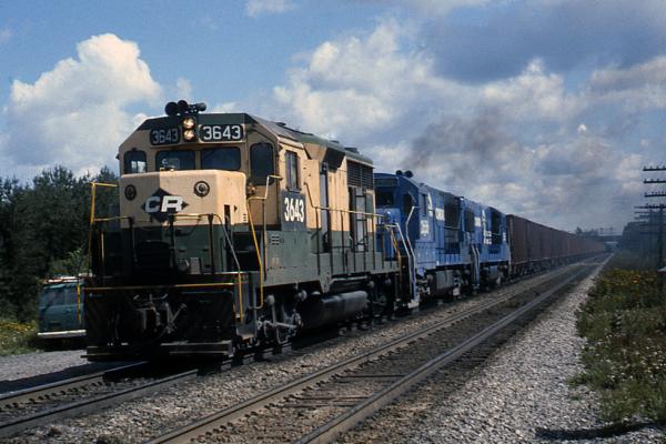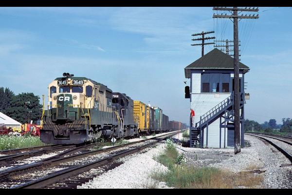 CR 3644 leads an eastbound through the station at Frankford Junction in Philadelphia, PA. 1978