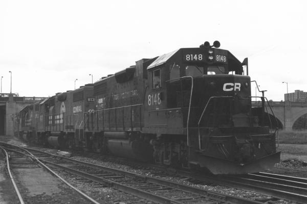 CR 8145 leads a train of work equipment to Reading PA for storage in November 1987