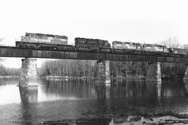 CR 6386 shoving BLR173 at Bancroft, MA. on 7/3/81.