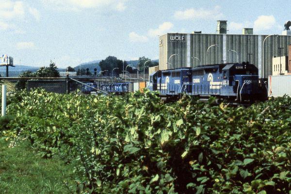 CR SD40 #6284 (ex PC), GP-38 #7894. West Fairview, PA 4/28/84