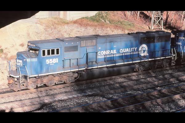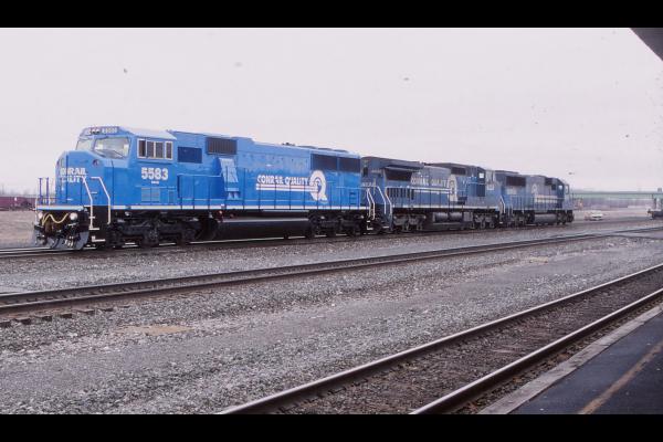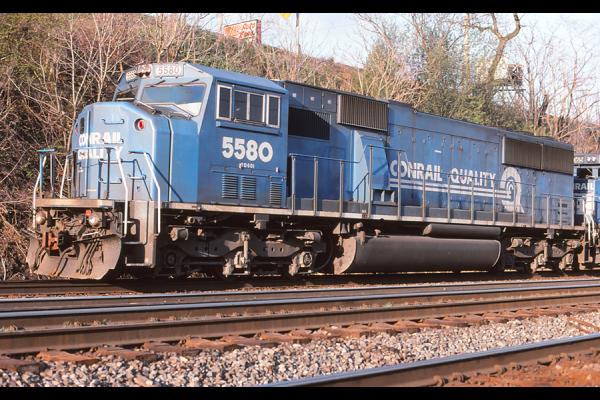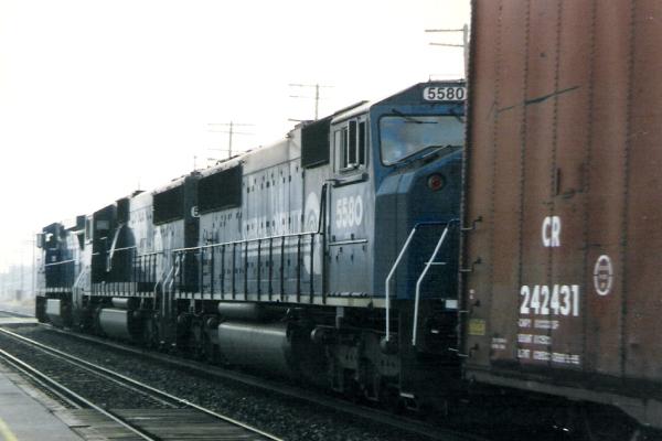 CR 5580 trails an Eastbound at Waterloo, IN, in 1995