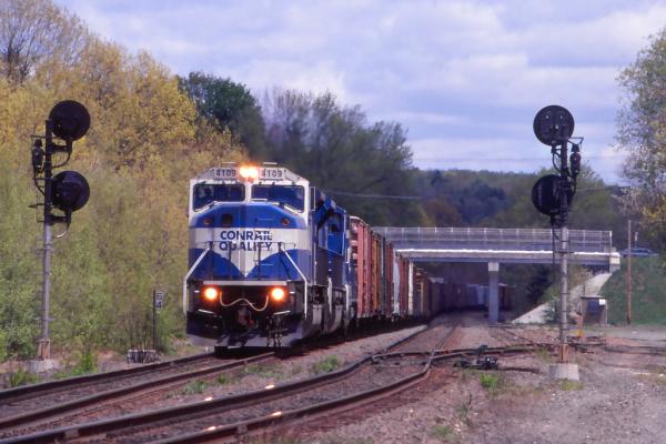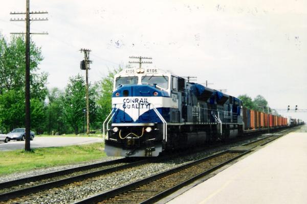CR 4105 SD80MAC leads Eastbound Conrail NLPI-1 at Beaver Falls