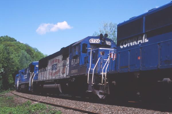 CR 6721 leads eastbound Conrail upgrade at Gallitzin, PA on June 15, 1985