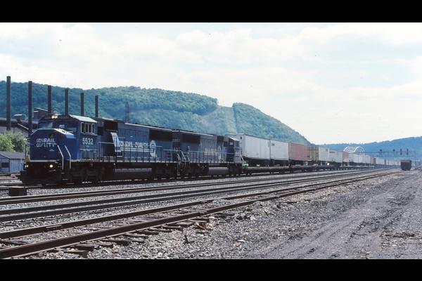 CR 5536 SD60M leads westbound Conrail UNS-29B near MP 120.2