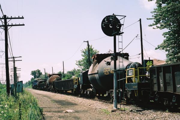 HOT - The heat was unrelenting as a WB CSX with an ex-CR C40-8W enters the interlocking
