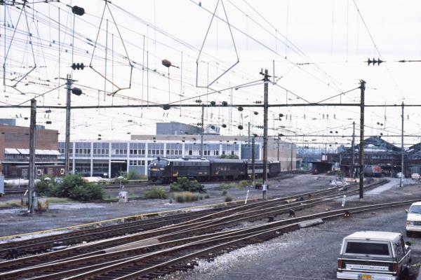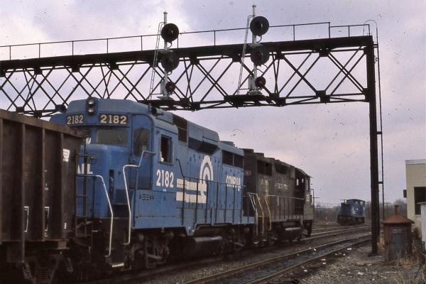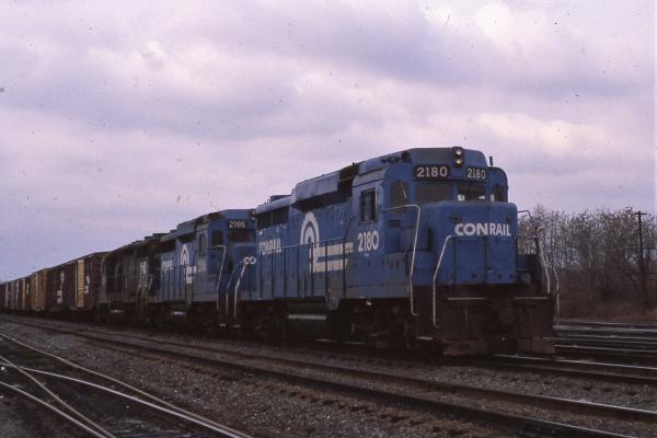 CR 2180 leads an eastbound train at Abrams Yard, Norristown PA, 12/81