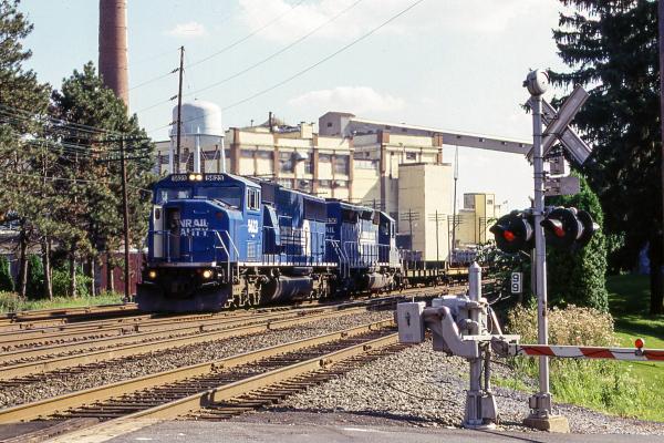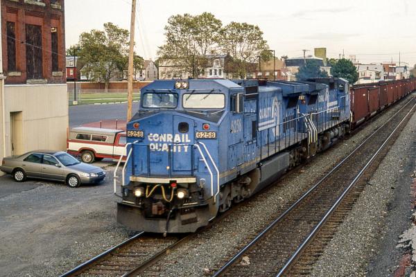 CR 6415 leads an out of place B36-7 on a ZBB ore train at Birdsboro PA in 1992