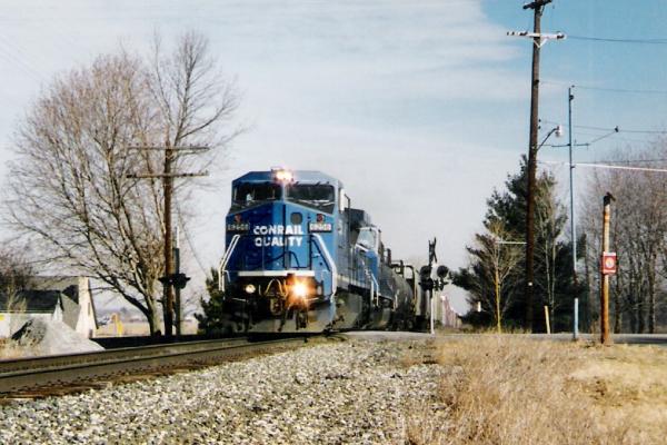 Conrail's Toledo Branch was an ex NYC branchline that ran from Stanley yard in Toledo, OH down to Columbus, OH, a distance of 126 miles.From Toledo to Ridgeway, the line issignaled CTCand probably the busiest part of the line with trains turning on and off of it at Ridgeway. From Ridgeway on south to Columbus, the line was dispatched with Form-D's and called the Scottslawn Secondary, named after one of the two most important customers on the line, Scotts fertilizer Co.(the other is the Honda plant in Marysville, OH). It was also a photographers delight on sunny mornings as you could usually count on 3 or 4 regular southbound trains each day. As an aside note, this line would gain noteriety in 2000 or 2001 when CSXT 8888(ex CR) led an umanned runaway train down the line until finally being stopped north of Kenton, OH. Most of the photos you'll see date from 1996 thru1999.¬