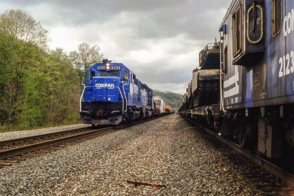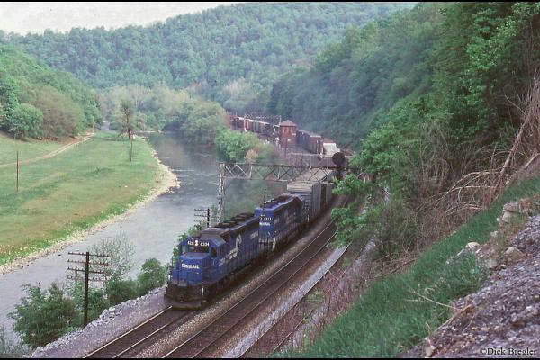 CR 6297 Leads an Eastbound Freight on Rockville Bridge, 3/85
