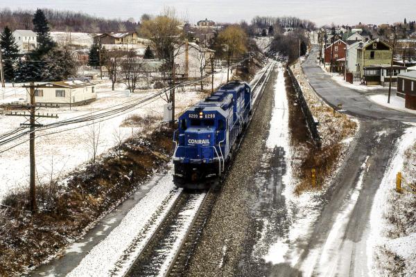 CR 6327 leads a westbound over the Lehigh Canal on a dreary March day in Allentown, PA. March 31, 1985