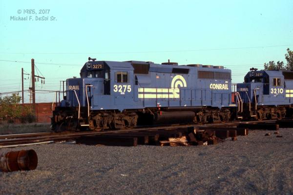 CR 3275 (ex Reading) is in the engine service area at Frankford Junction, Philadelphia, PA. September 30, 1985
