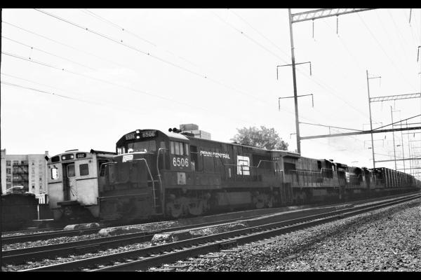 CR ex PC GE U25C #6506 with other units, New Brunswick, NJ 8/16/76