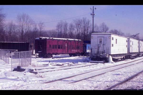 CR 1997 leads a westbound freight through the Campbell Hall, NY passenger station. 4/85