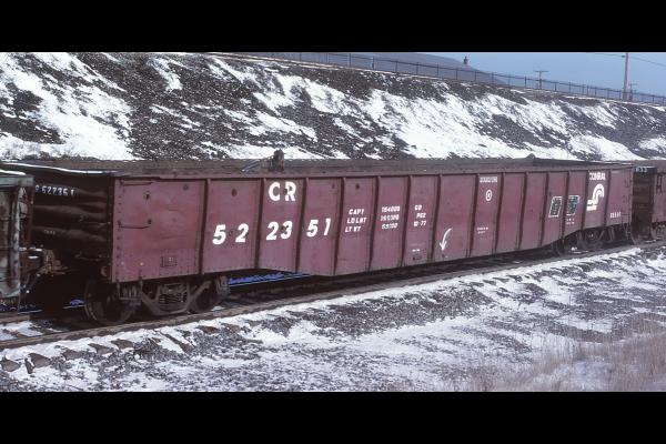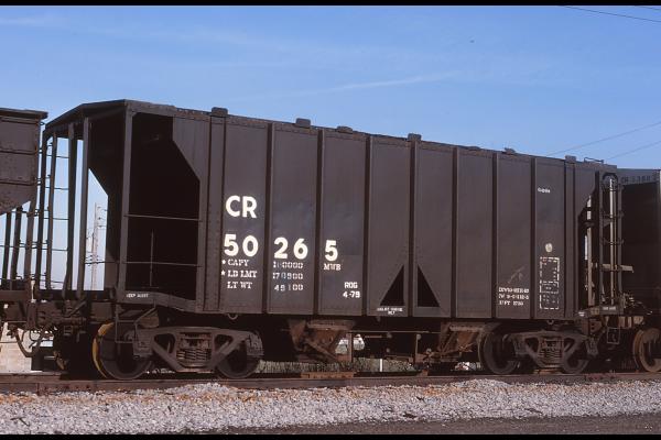 CR 45217 250-ton wrecker with CR 45516 crane tender car at Collinwood Yard in Cleveland OH 6-25-1983