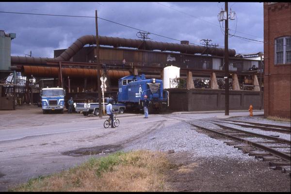 CR 9373 pulling gondolas from the former Milton Steel Mill, Milton, PA. June 20, 1985