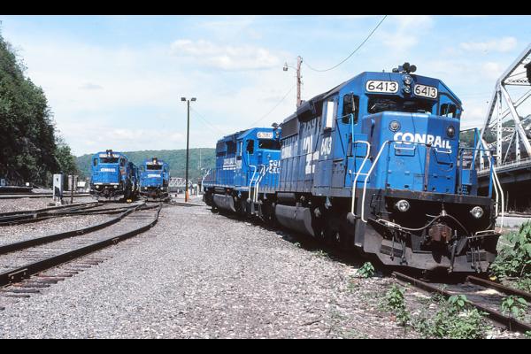 CR 6413 brings a train from Saucon Yard in Bethlehem, 4/20/1986