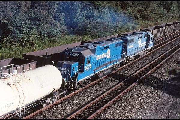 CR 8066 and light power move ENG201 at Mapleton on the Pittsburgh Line, 10/91