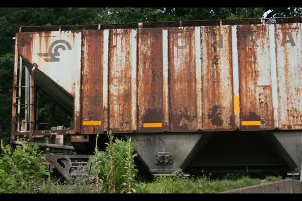 CR 886174 lays on its end, spilling grain all over the place at the Port Richmond Graino, Late 70s early 80s