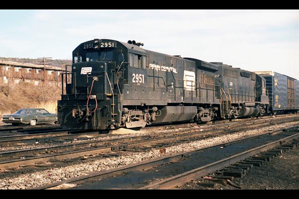 CR 2970, 2707 and SP SD45T-2 931 in Port Richmond Yard, Philadelphia. April 15, 1977