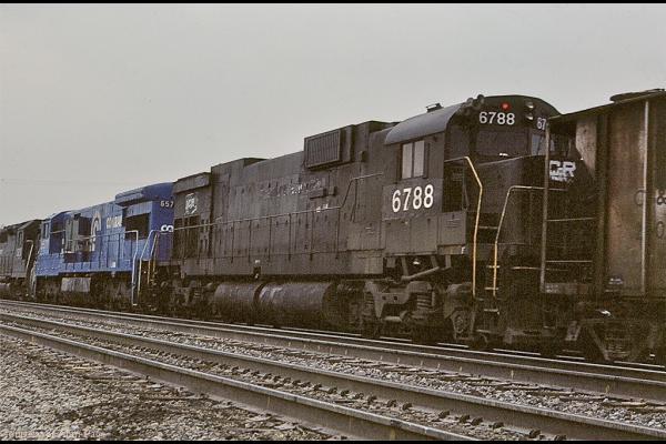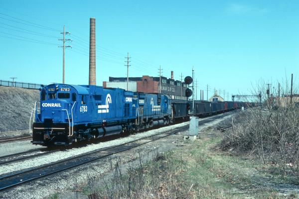 CR 6783 and 6770 in charge of a Westbound coke train at Collinwood (Cleveland), Ohio in April 1978